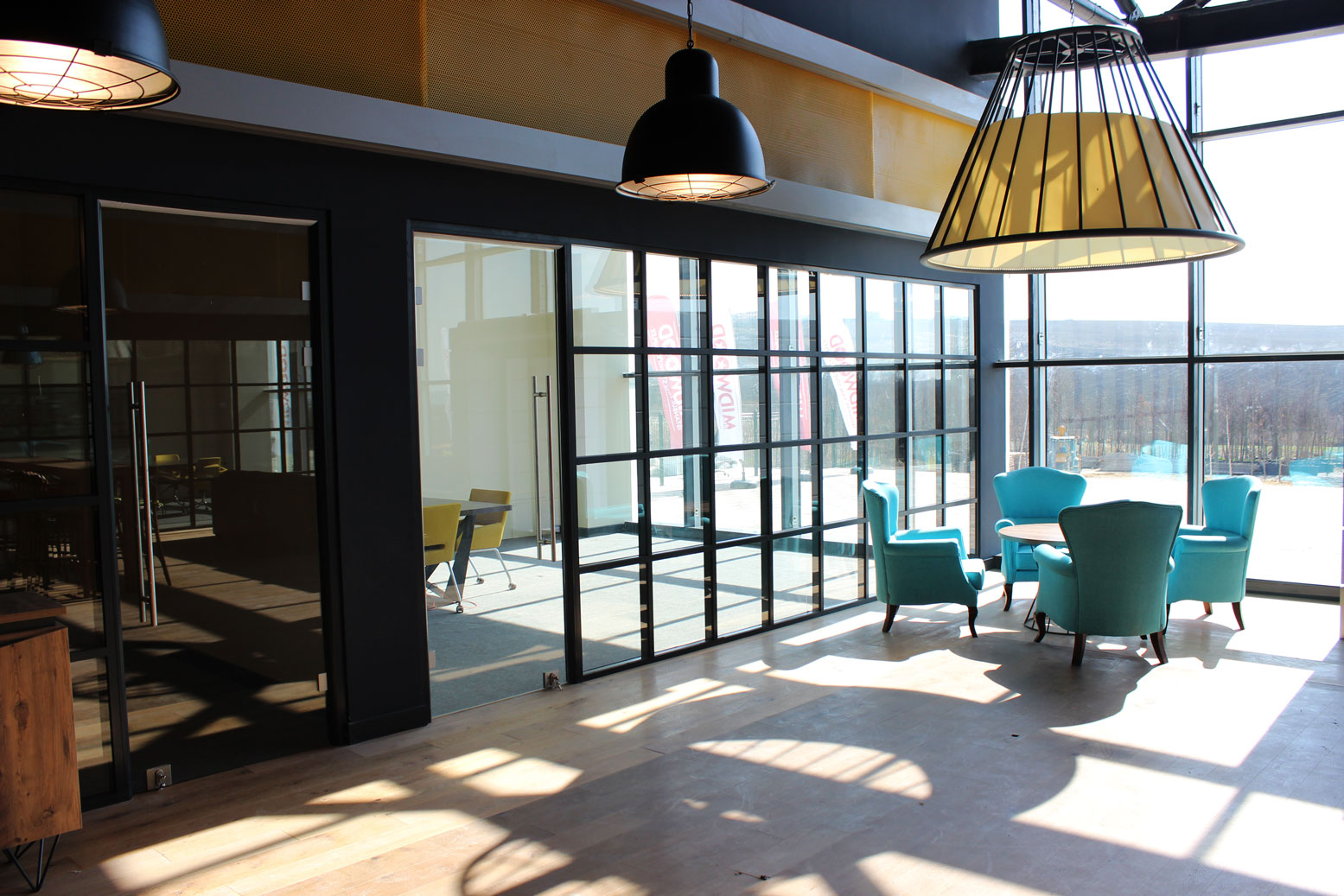 6 mm düz, temperli veya lamine rodajlı camlar (Opsiyonel: mat cam, film kaplı cam, vs.), 15mm ayar payı ile 35 mm yüksekliğindeki alüminyum eloksal zemin ve tavan profiline, alüminyum profili ile sabitlenmektedir. modüllerin dikey ve yatay birleşimleri; alüminyum profil konstrüksiyon vasıtasıyla sağlanmıştır. Sistem kalınlığı 80 mm’dir. Proje bazında camlı modül m2 cinsinden hesaplanmaktadır.